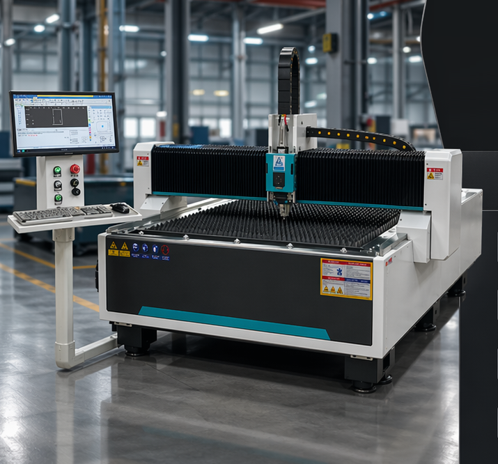 Конструкция станка рассчитана на ежедневную промышленную эксплуатацию. Оборудование оснащено системой автоматического контроля высоты режущей головки, которая поддерживает стабильное расстояние между соплом и поверхностью металла во время резки. Это позволяет компенсировать неровности листа, повышает качество реза, снижает риск касания материала режущей головкой и делает процесс обработки более стабильным.