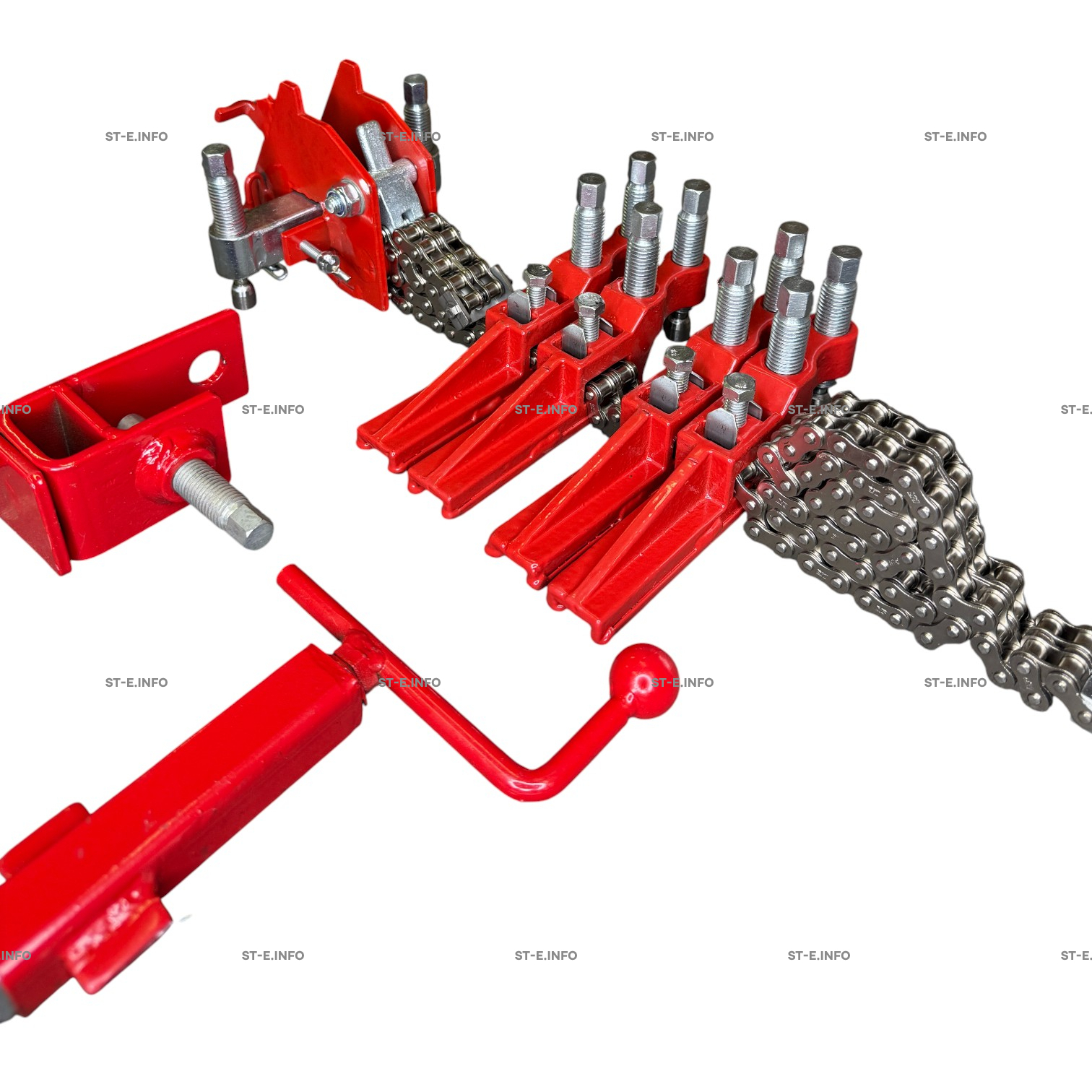 Рабочие элементы изготовлены из высокопрочной стали, цепь и винты имеют защитное покрытие от коррозии и брызг сварки, что увеличивает срок службы инструмента.